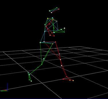 - Animates the stick figure using the frame to frame change in the mark positions.