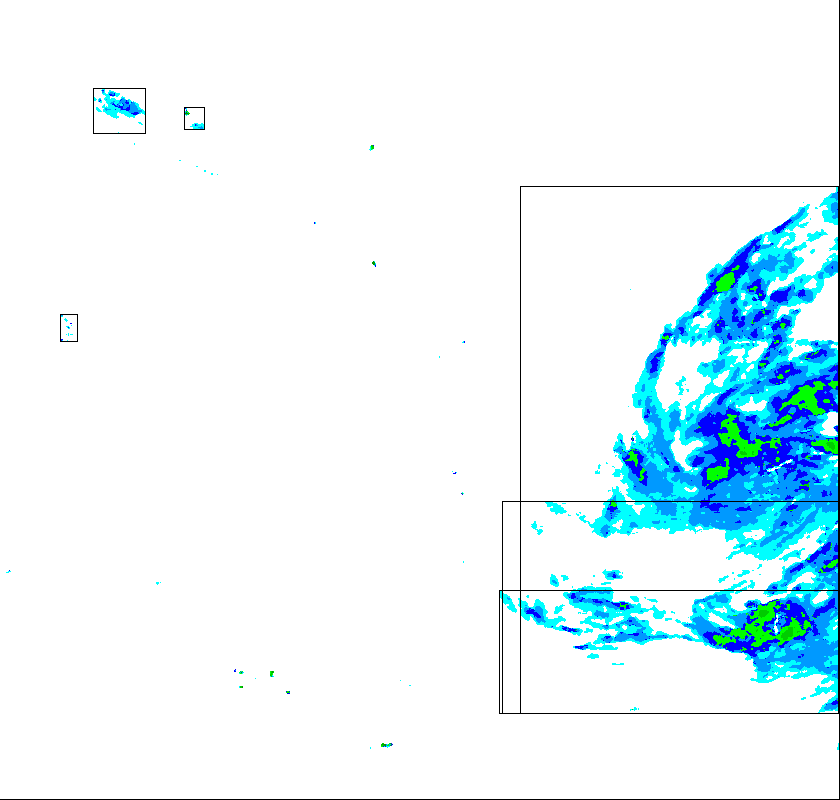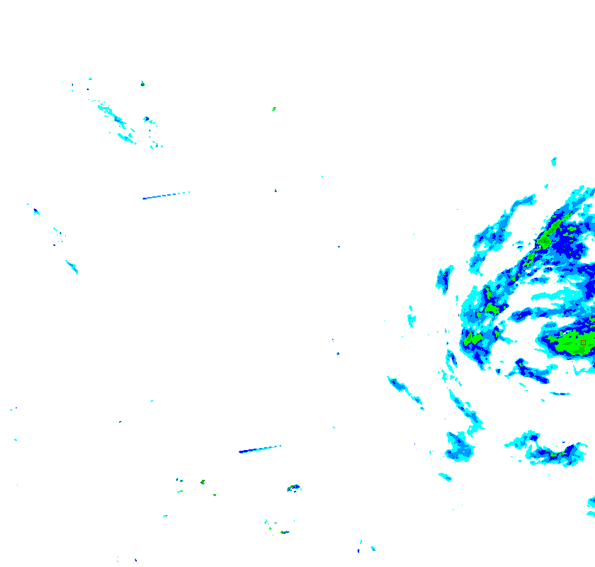 In this image, you can see a little target. This represents how we find the severity of a storm in the user's vicinity. Once we have the GPS coordinates all that is left is looking at a small radius around the user. In this case, all pixels were green which indicates light rain. This is reported to the phone, which will tell the user that there will be light rain in 1 hour.