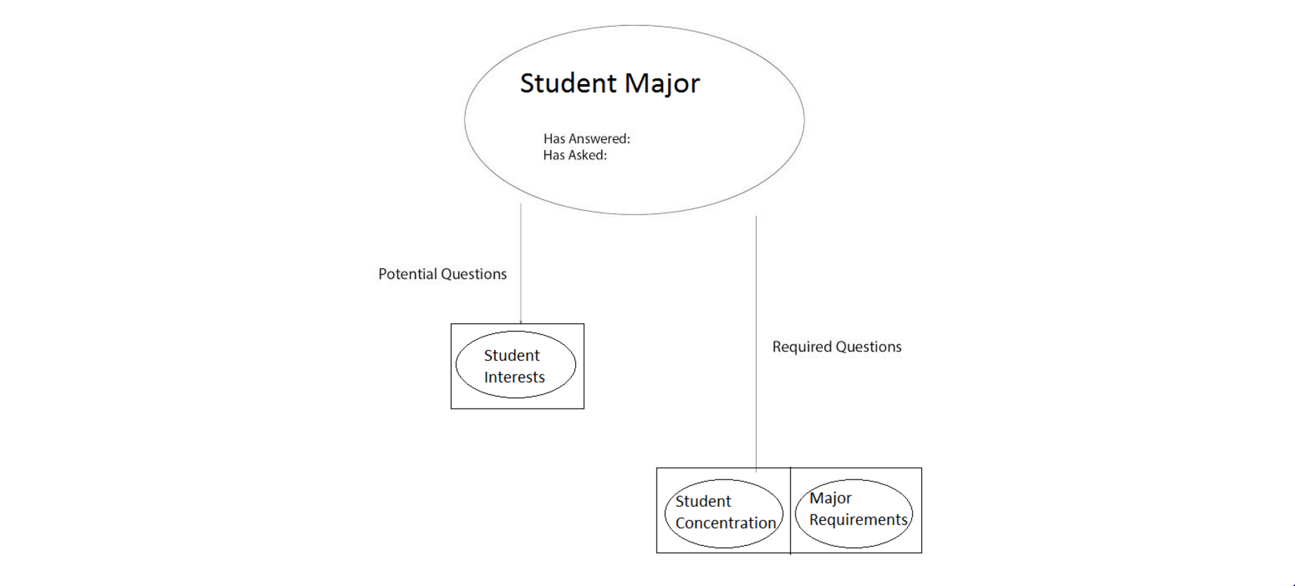 We knew that our eventual goal was to get the student to register for a course, and the tree is built around that fact. We have constructed a series of connections for each node that are dependent on whether or not the user answered the question. This allows a user to control the flow of the conversation if they so choose. We check what information we already have saved in order to ensure we don’t ask a question we already know the answer to. We also try to avoid asking questions we have already asked, unless it is a question worth repeating. By checking for both of these things, our tree allows us to push the conversation in a sensical and practical way that furthers our goal of recommending courses.
