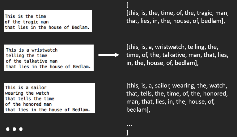 A corpus can be stored as a nested array of documents containing words in the order in which they occur in the text.