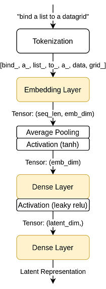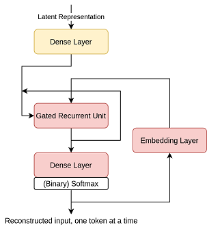 The yellow units here represent trainable elements, which will start random and be modified during training. The red units are similarly trainable, but additionally are being applied multiple times for each input, a number of times basically corresponding to the length of the reconstructed input.