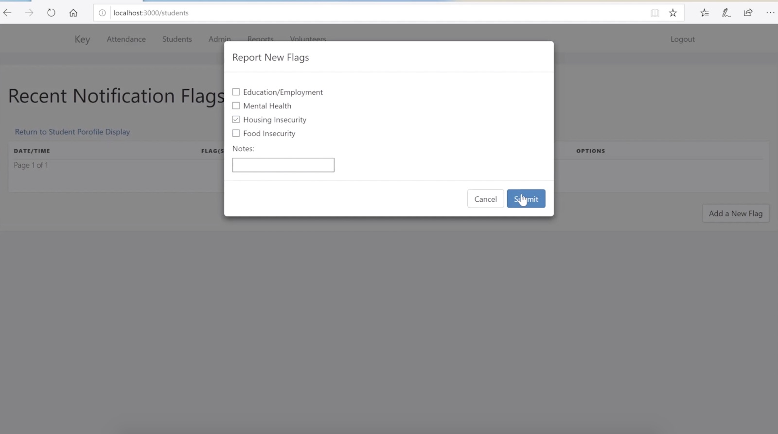 Fig.5 - Table that shows admin all the flags a student has from the previous week.