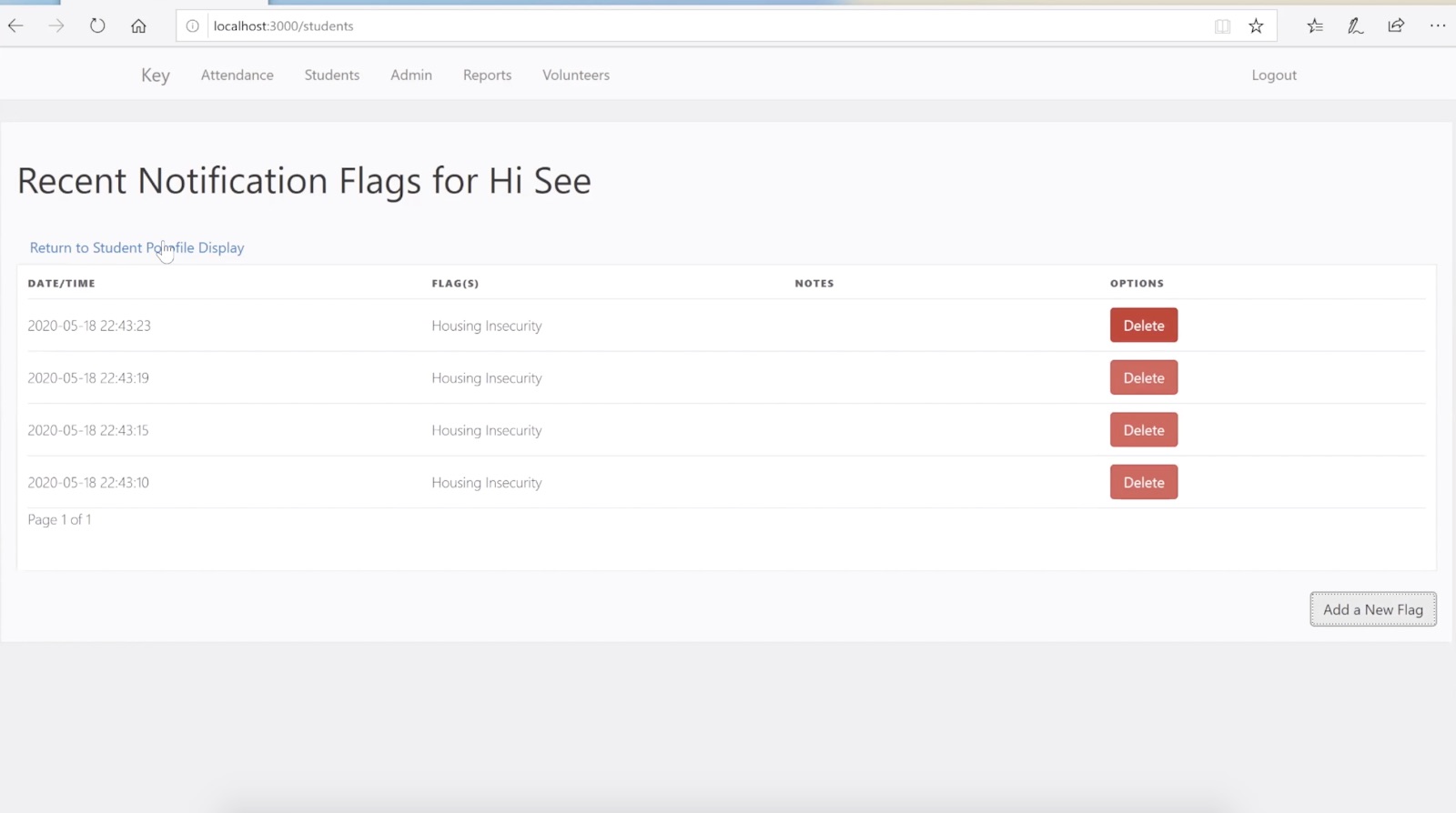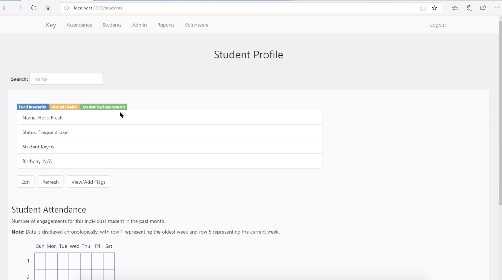 Fig.3 - Updated student profile with flags, status, and key displayed.