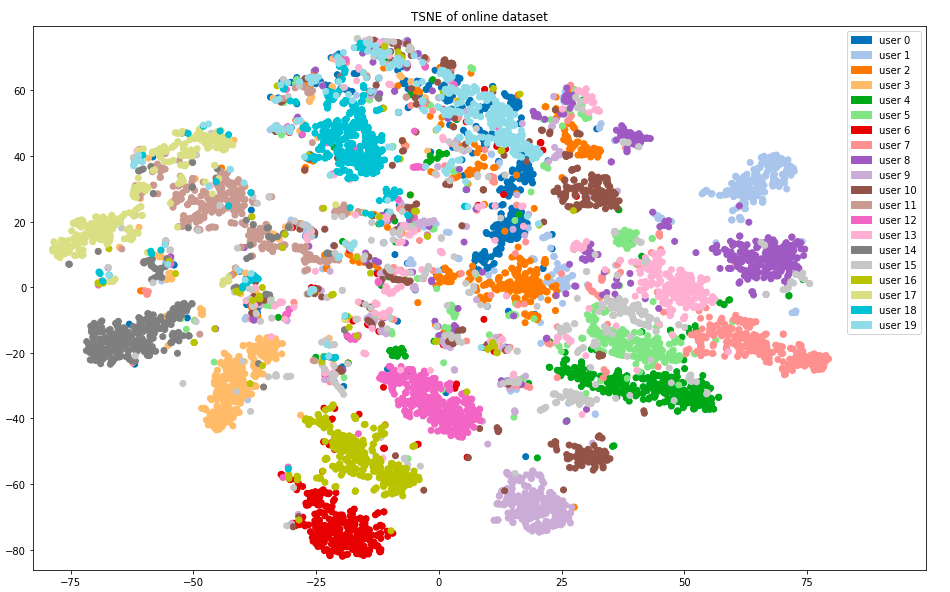Figure 1: t-SNE Dimension Reduction of 20 Users from Online Data Set