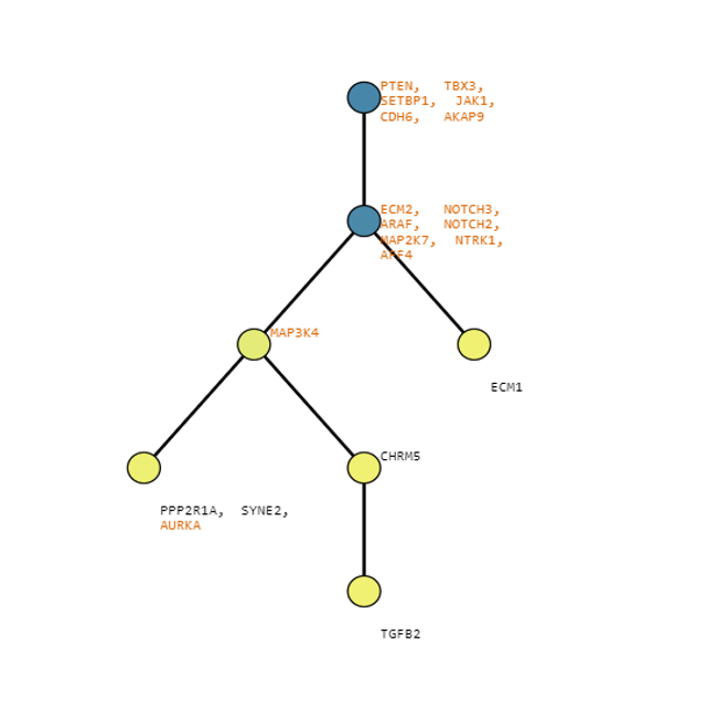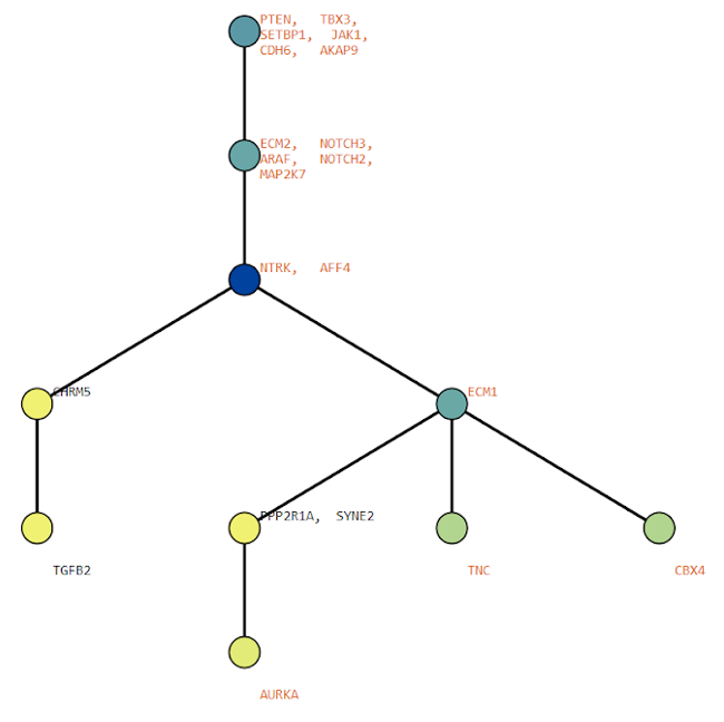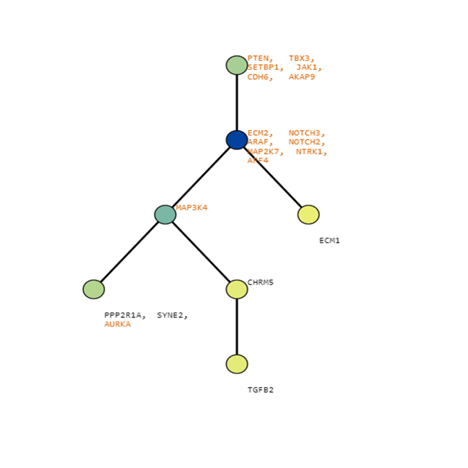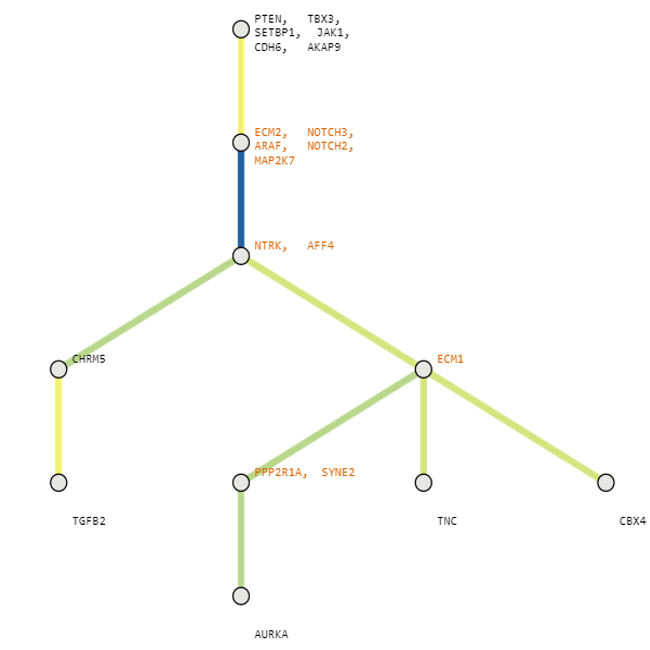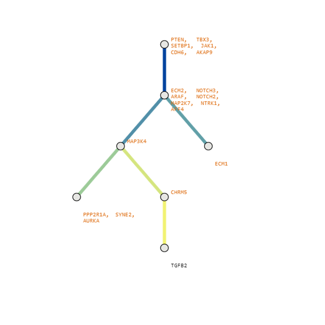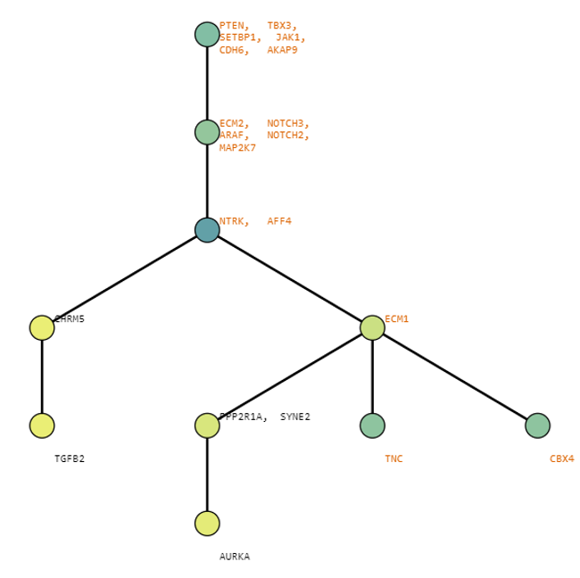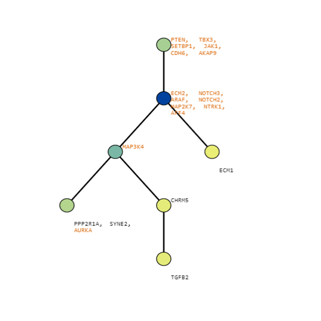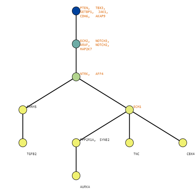 Below are some visualization outputs from VECTr that show comparisons between two trees that contain data from a triple-negative breast cancer data set.