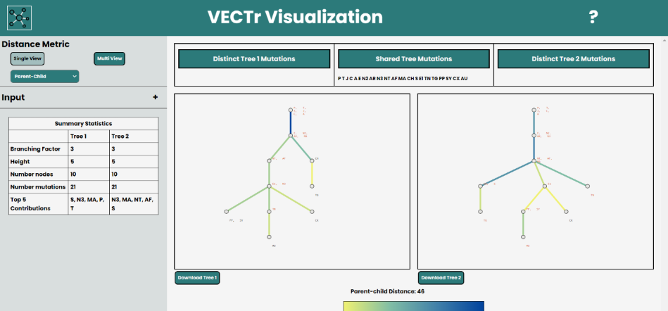 VECTr, pictured above, is a web based tool for visualizing clonal trees. You can begin by selecting the trees you will be visualizing.