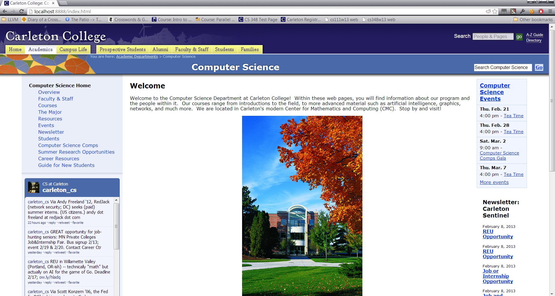 of the Carleton Computer Science Department home page. Only the front page was