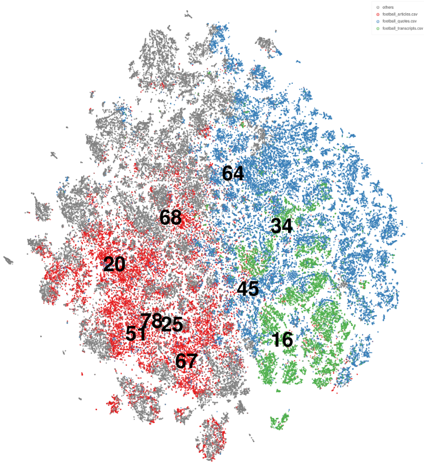 Below is the output of one of our topic modeling runs only using football data and removing conversational language. Less documents are being considered different!
