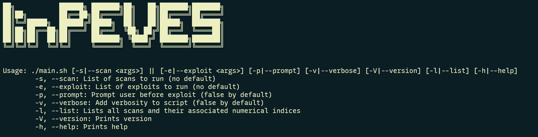 Decide which scans and exploits you want by running ./main.sh --list. See list to the right:
