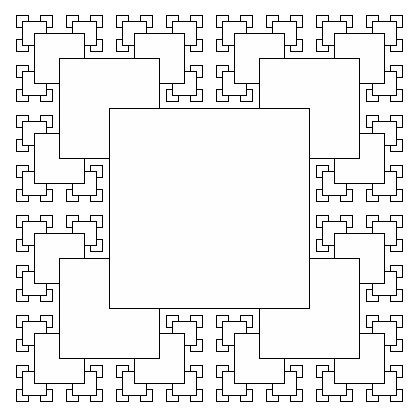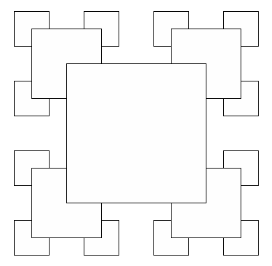 Another naturally recursive problem is the drawing of fractals--images that are identical or nearly identical to a sub-part of themselves. For a classic example of a fractal, take a look at Sierpinski's Triangle. If you look at just one corner of the full Sierpinski's triangle, what you see is another Sierpinski's triangle--just a little smaller. As with all recursive algorithms, you solve the big problem ("draw Sierpinski's triangle") by breaking it into smaller problems of the same type ("draw three Sierpinski's triangles of half the height of the big one").