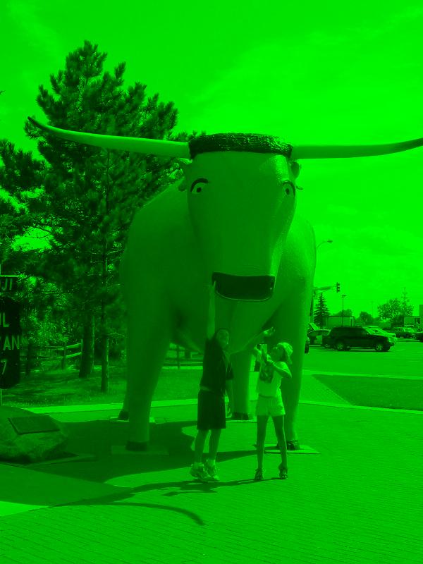 The images.py file has two sample functions already written: getGreenImage and getSmallImage. If you were using this picture of my children harrassing Babe the Blue Ox in Bemidji, Minnesota a few years ago: