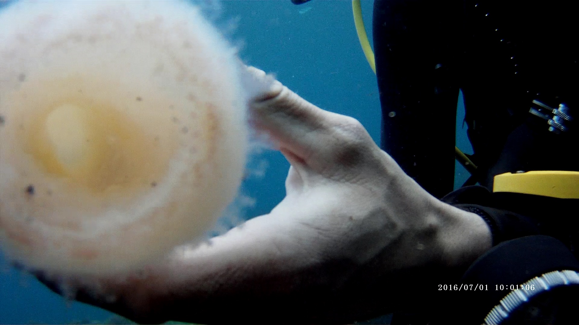 By the way, my answers to those questions are "piano and hiking", "St. Louis Park, Minnesota", and "pyrosome". Here are some pictures I took of a pyrosome while diving a couple summers ago.