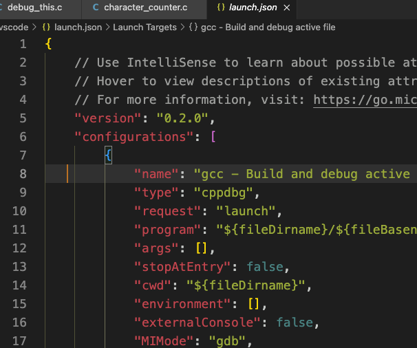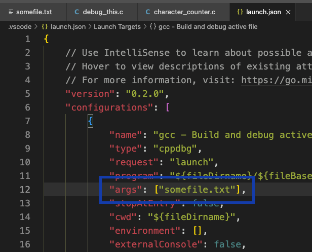 - What if your program requires more command-line arguments? What syntax do you use in the launch.json/configuration file?