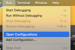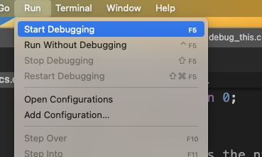 Start debugging. You can do this either from the Run menu or from the play-button-with-a-bug in the upper right corner of VS Code.