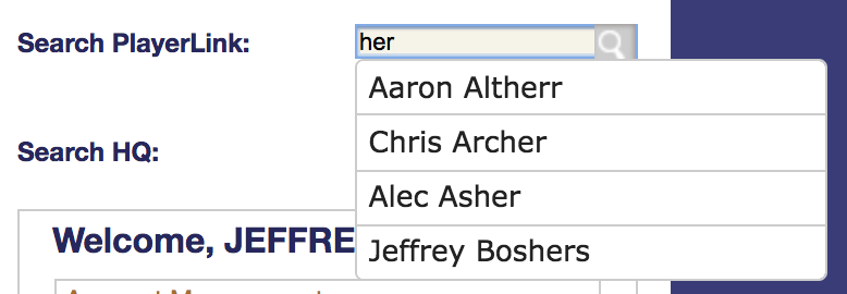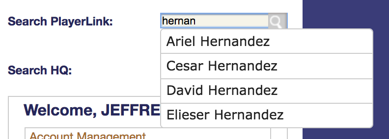 During the baseball season, I make heavy use of a site called Baseball HQ. Among many other things, this site allows me to search for specific baseball players by name, with an autocomplete feature to help me. Here, for example, I am provided with a scrollable list of Hernandezes when I enter "hernan":