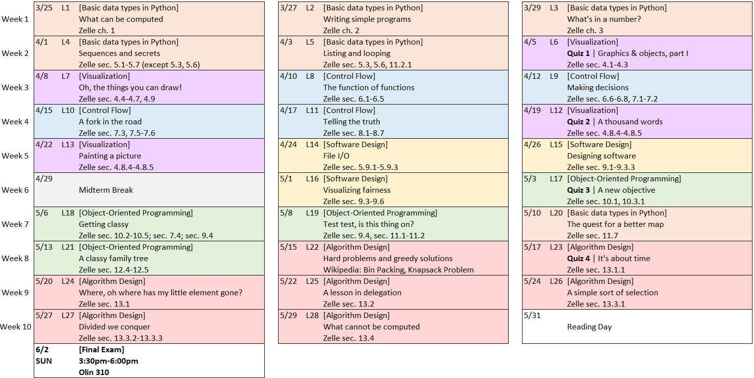 Mar. 25: Lesson 1 - What can be computedMar. 27: Lesson 2 - Writing simple programs